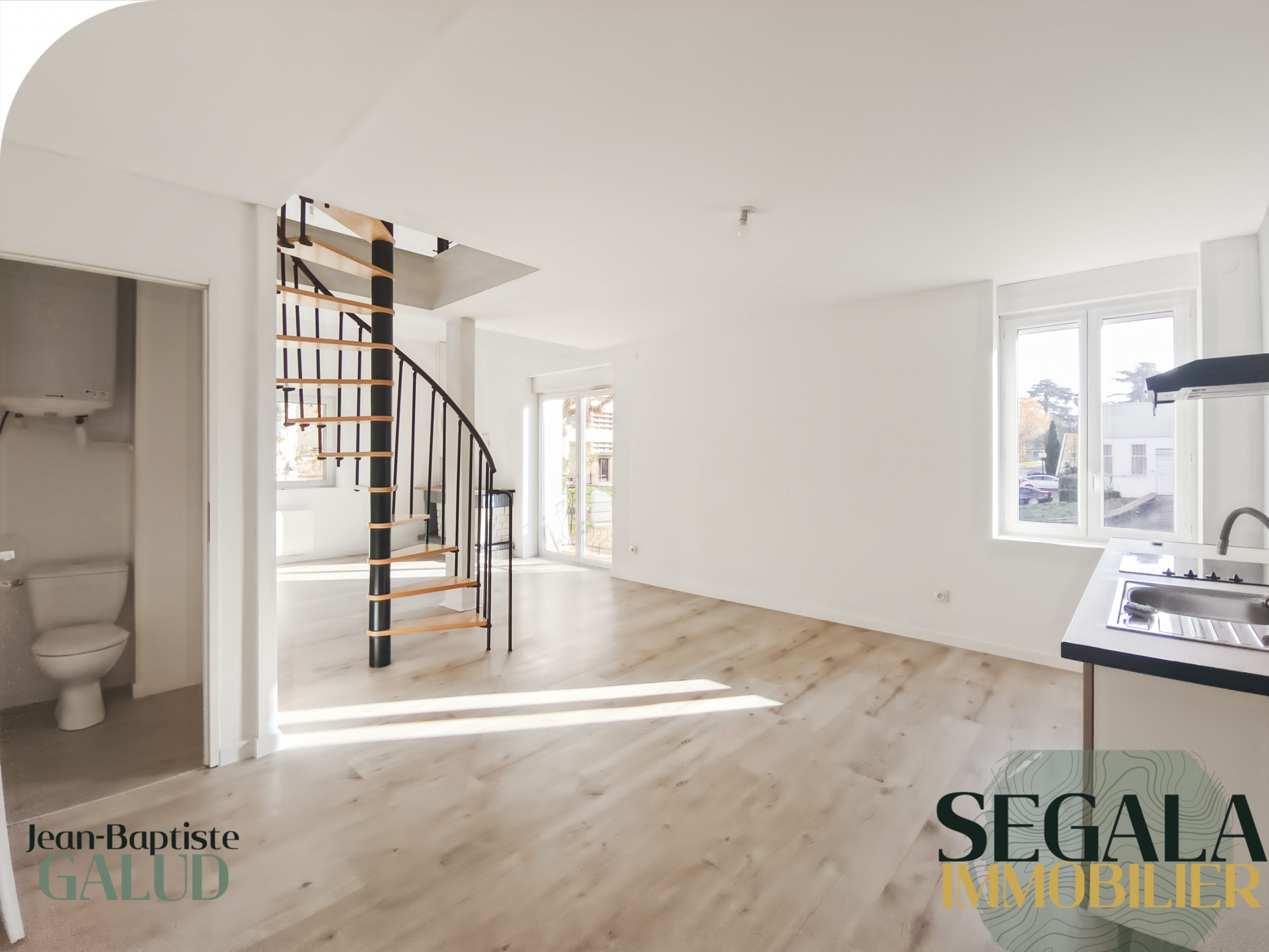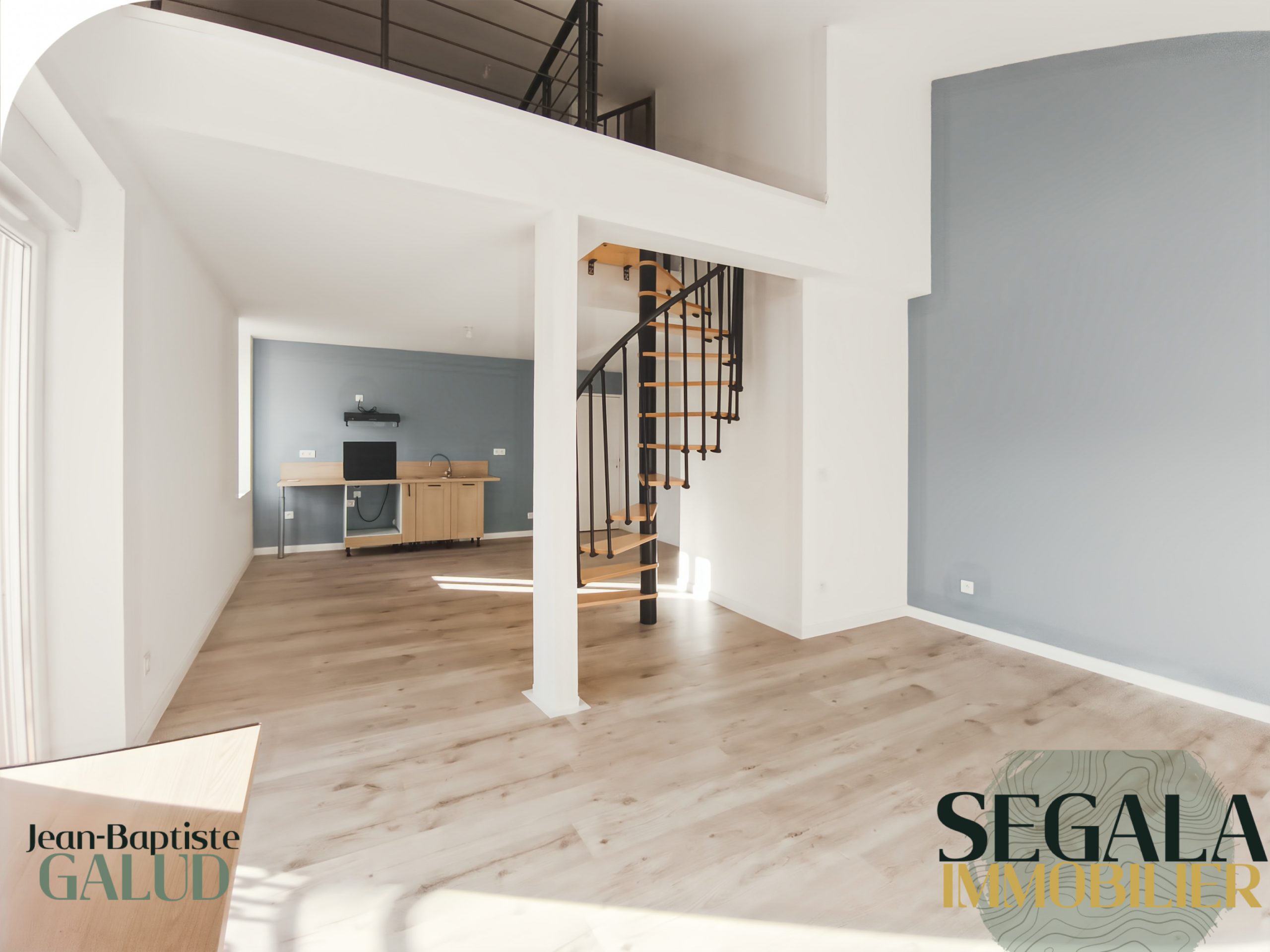 Cuisine / Escalier en colimaçon vers la chambre 💶 Loyer : 550 € charges comprises – 📍 Carmaux – 🛏️ 1 chambre – 📐 50 m² – 🏠 Type : Duplex – 📅 Disponible immédiatement